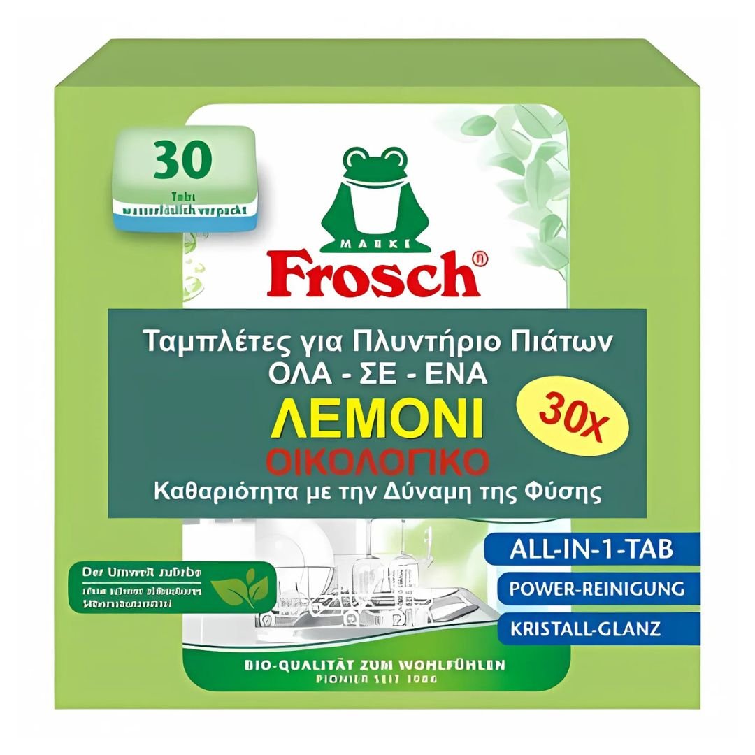 Οι Eco Ταμπλέτες Πλυντηρίου Πιάτων Frosch λεμόνι 30Χ, είναι πολυλειτουργικές, προσφέροντας ολοκληρωμένη φροντίδα για τα πιάτα και τα σκεύη κουζίνας. Η φόρμουλά τους ενσωματώνει φυσικά συστατικά, όπως τα εκχυλίσματα λεμονιού, τα οποία είναι γνωστά για τις ισχυρές απολιπαντικές τους ιδιότητες. Οι βασικές ιδιότητες του προϊόντος περιλαμβάνουν: