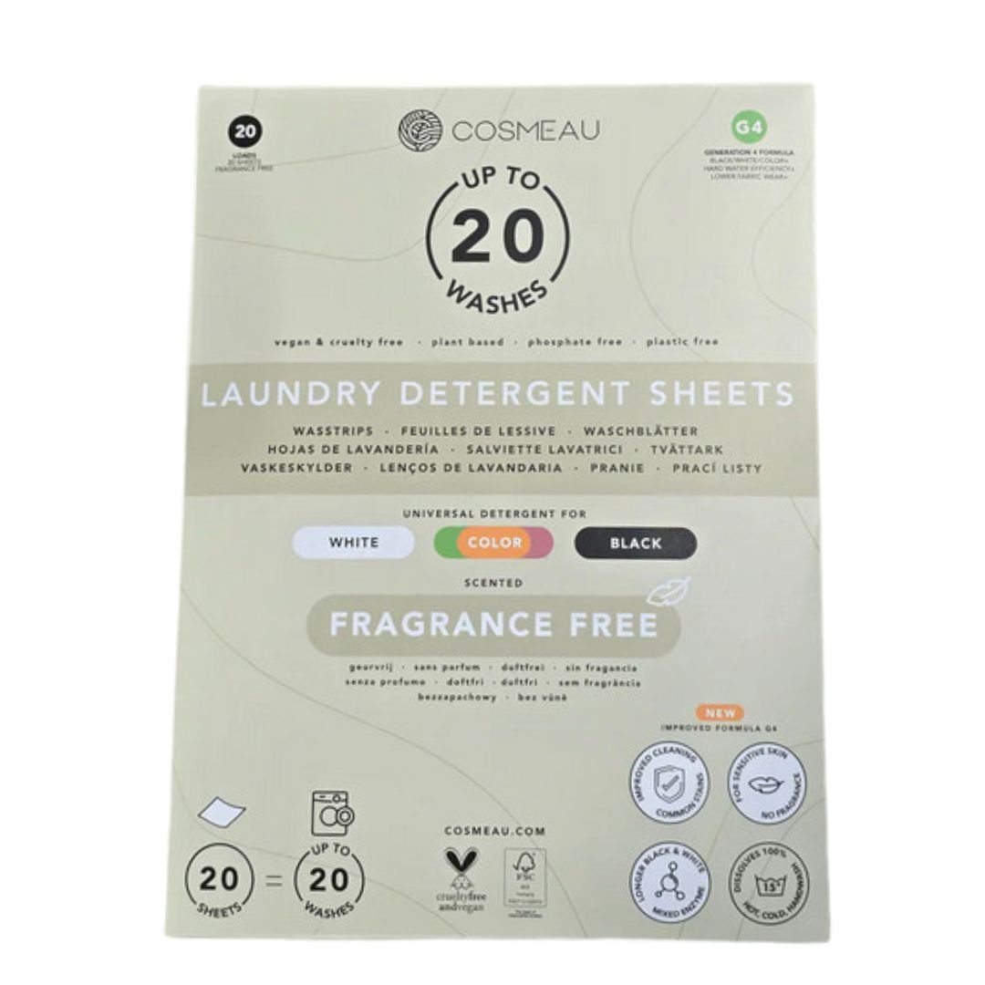 Τα Cosmeau Unscented είναι vegan, πλήρως βιοδιασπώμενα και χωρίς πλαστικό, μέρος της eco σειράς Bamboozy. Δεν περιέχουν συνθετικό άρωμα (perfume) ή ελάχιστο μόνο από τα φυσικά συστατικά, καθιστώντας τα την πιο καθαρή και υποαλλεργική επιλογή της σειράς. Η φόρμουλα εστιάζει αποκλειστικά στην αποτελεσματική πλύση και την απαλότητα, χωρίς να αφήνει υπολείμματα μυρωδιάς – ιδανικά για άτομα με εκζέματα, άσθμα, πολλαπλές χημικές ευαισθησίες ή για πλύσιμο ρούχων μωρών.
