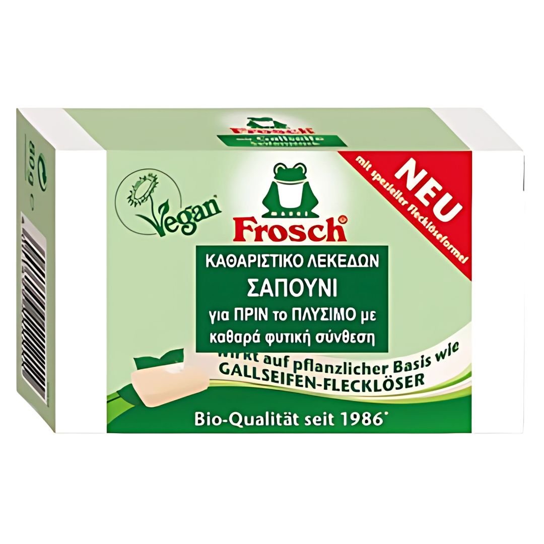 Το Σαπούνι Καθαριστικό Λεκέδων Προ-Πλύσης Frosch 80gr, είναι ένα εξαιρετικό προϊόν προ-πλύσης που έχει σχεδιαστεί για να αντιμετωπίζει ακόμα και τους πιο επίμονους λεκέδες, ενώ παραμένει απαλό με τα χρώματα και τα υφάσματα. Με τη vegan σύνθεσή του, το προϊόν αυτό αποτελεί μια φιλική προς το περιβάλλον και ηθική επιλογή, ισάξια σε απόδοση με το θρυλικό Gall soap (Gallseife), αλλά χωρίς ζωικά συστατικά. Ας εξετάσουμε αναλυτικά τα χαρακτηριστικά, τα οφέλη και τη σύνθεση που καθιστούν αυτό το καθαριστικό λεκέδων μια κορυφαία επιλογή για κάθε νοικοκυριό.